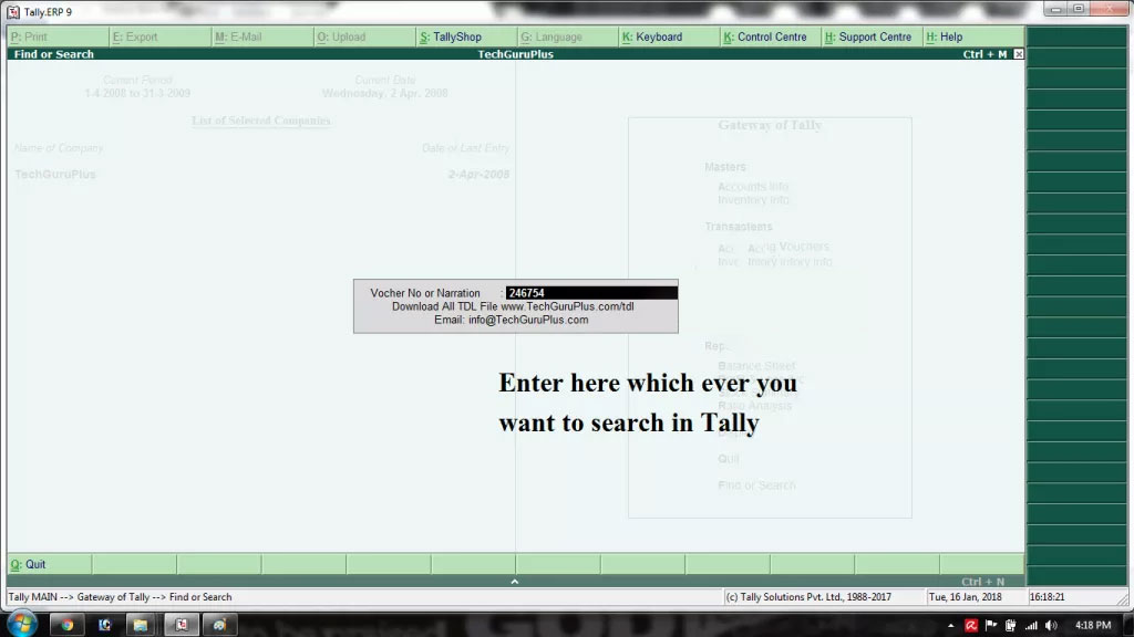 Here you can request for the TDL file for Find or Search Option in Tally.ERP 9 Software.
